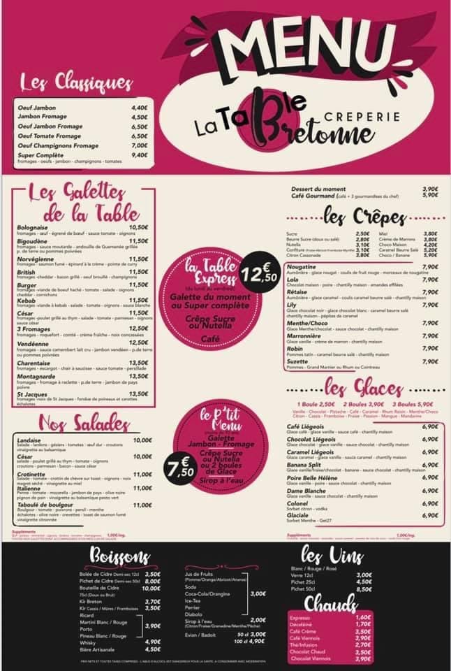 Votre crêperie la Table Bretonne vous accueille du Lundi au Samedi de 11h30 à 14h30 pour la vente à emporter! N’oubliez pas de passer vos commandes via téléphone, sms, Messenger pour moins d’attente! 0695532506